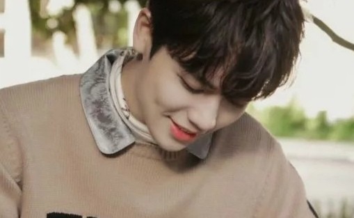 林彦俊穿了件棕色的毛衣,头发耷拉着,远远地看上去就是个平常的帅哥学长。