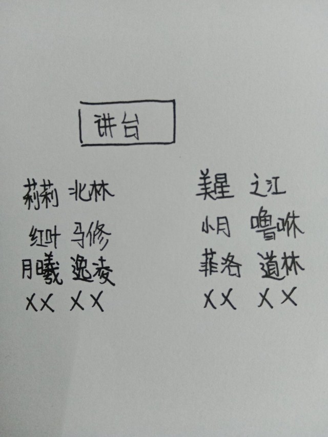龙套老师:这是座位表,请同学们按座位表坐好