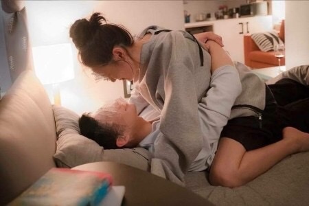 苏仙儿拉着男生将其拽到了床上