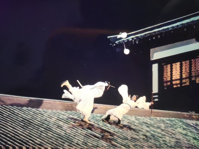 转身飞身坐在屋檐上