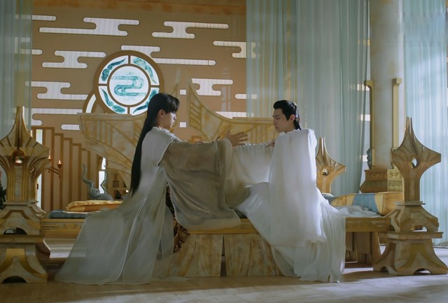进到七政殿,旭凤和润玉盘腿而坐,旭凤亲自为润玉疗伤祛除体内的火毒。