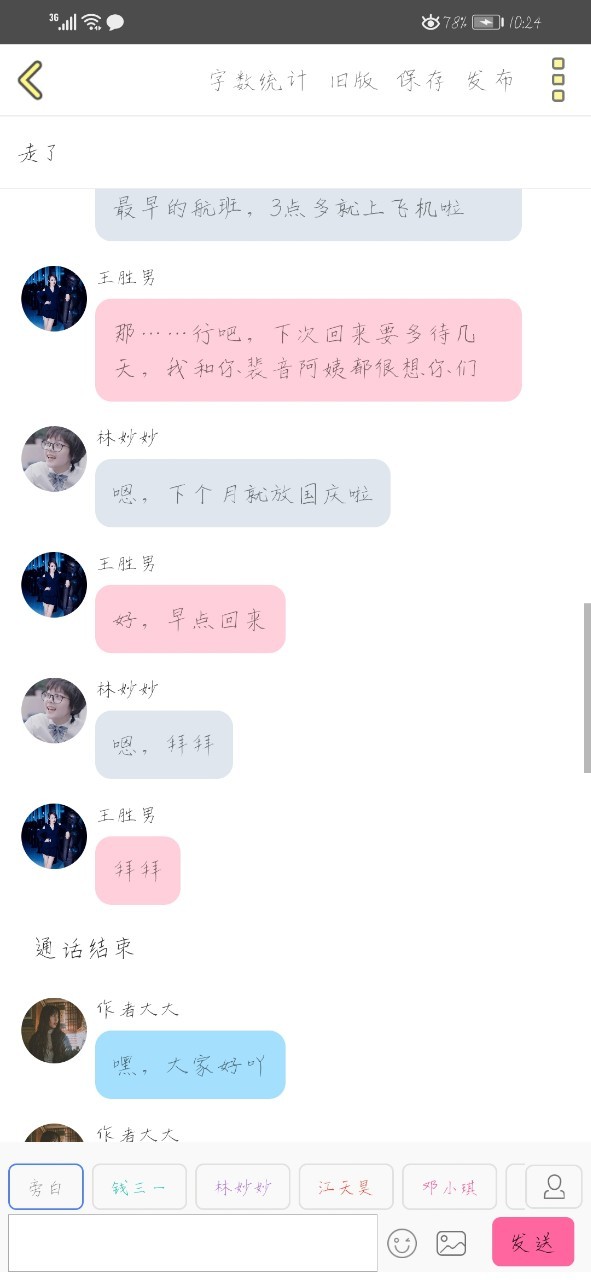 钱三一好了,妙妙,我知道你舍不得叔叔阿姨,但是我们是必须要回去的,明天下午要上课的(小声)