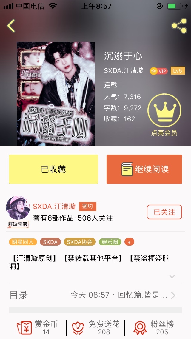 江清璇特别喜欢星星“是篇虐文,前面还不太明显的那种~”
