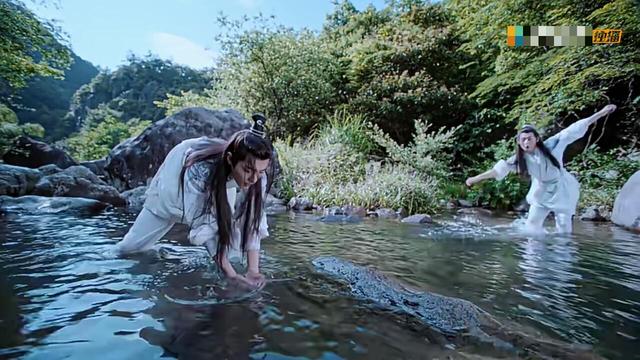 清澈的溪涧干净得不见一丝杂质,魏无羡和聂怀桑二人正挽着袖子在摸鱼嬉戏。