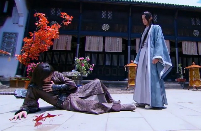尹千觞冲过去打向少恭,可是他突然消失,功力要比以前厉害的多,一掌将千觞打出去吐血倒地。