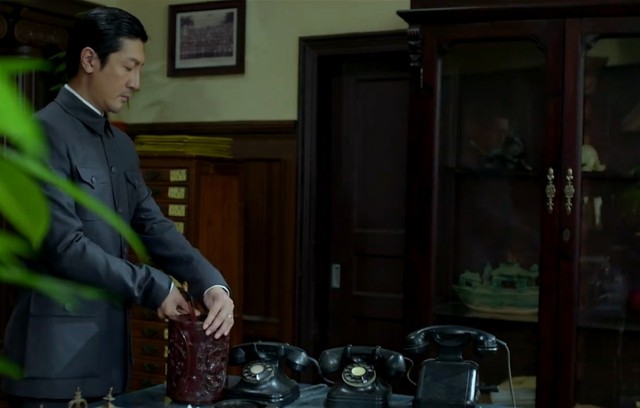 陈深和林兮走了以后,毕忠良走到自己的办公桌面前,转动那个笔筒,之前放置书的柜子后面出现了一个木门。