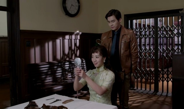 行动处,陈深在帮柳美娜盘头发。