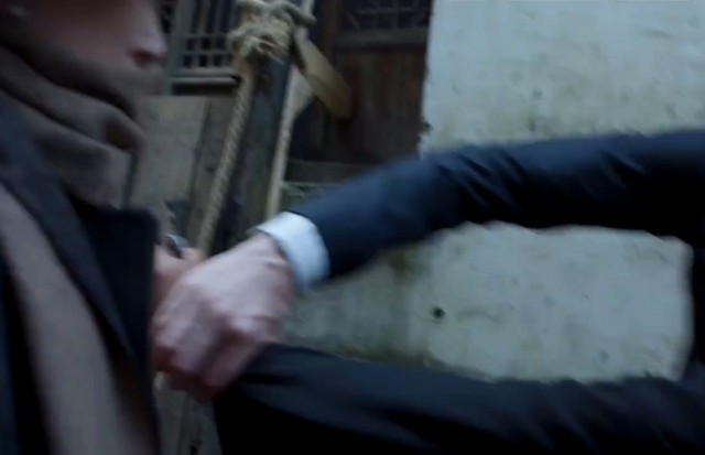 阿强在火车站门口也看到了陶大春。林兮看见陶大春坐着黄包车,起身向陶大春走过去。林兮故意碰了一下陶大春。