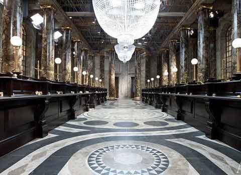 麦格:“记住这儿,书店和唱片店中间的破釜酒吧,酒吧后面小天井那面砖墙上,如果你正好敲对了其中某一块砖的话(垃圾桶上面数三块,再横着数两块)一道通向对角巷的门就会为你打开。当然你也可以通过飞路网到达对角巷。