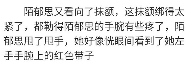 而这红色带子便是陌郁思的红腕带,就在蓝曦臣和陌郁思在床上时,它跑到了蓝曦臣的右手上