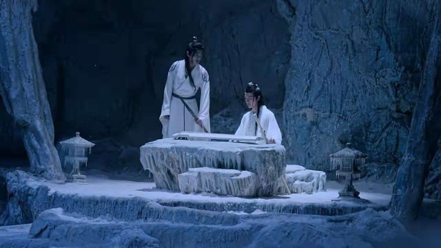 蓝忘机看着魏无羡坐着的地方,魏无羡尴尬的笑笑赶紧起身,拍了拍石台。突然琴声响起,蓝忘机见琴道。