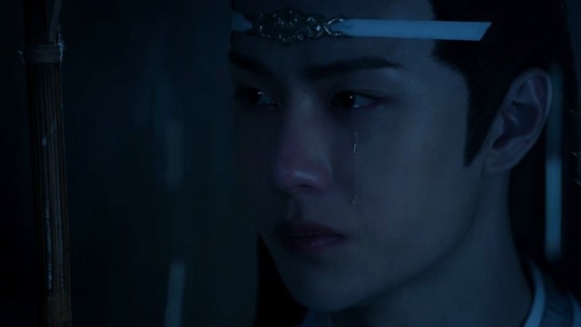 当眼泪滑过脸庞的时候,蓝忘机那无法掩饰的伤痛才汹涌而出,他只能眼睁睁的看着他在乎的人走上另一条路。