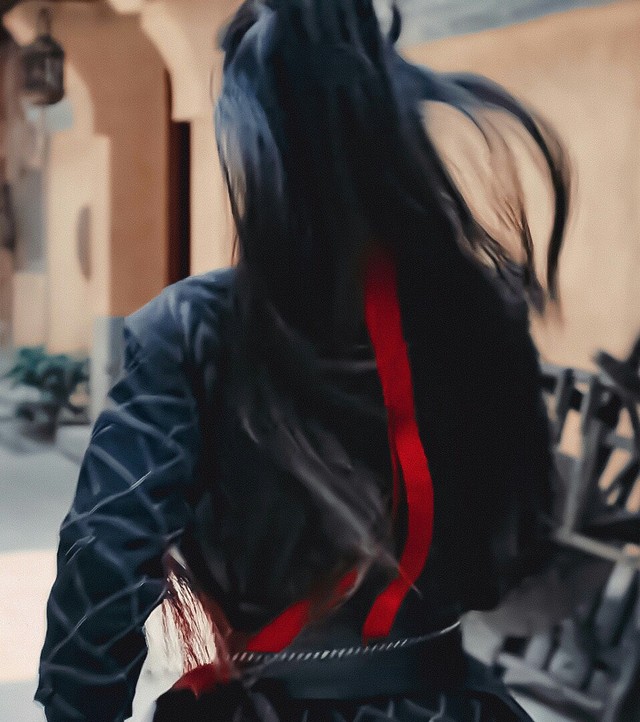 蓝忘机看向魏无羡,少年气息的脸庞,红色的发带