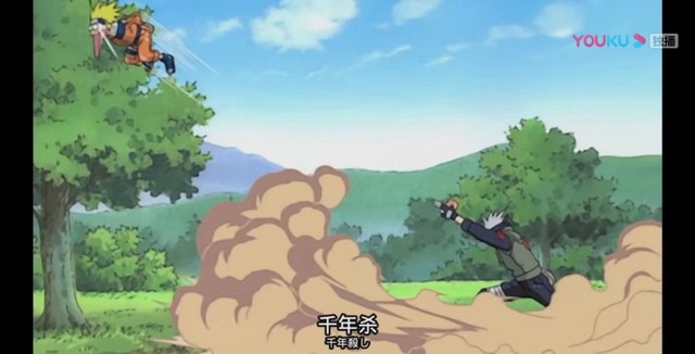 漩涡鸣人“多重影分身之术”十几个鸣人从四面八方攻向卡卡西,达到遮挡他视线的效果,卡卡西一手打散一个影分身