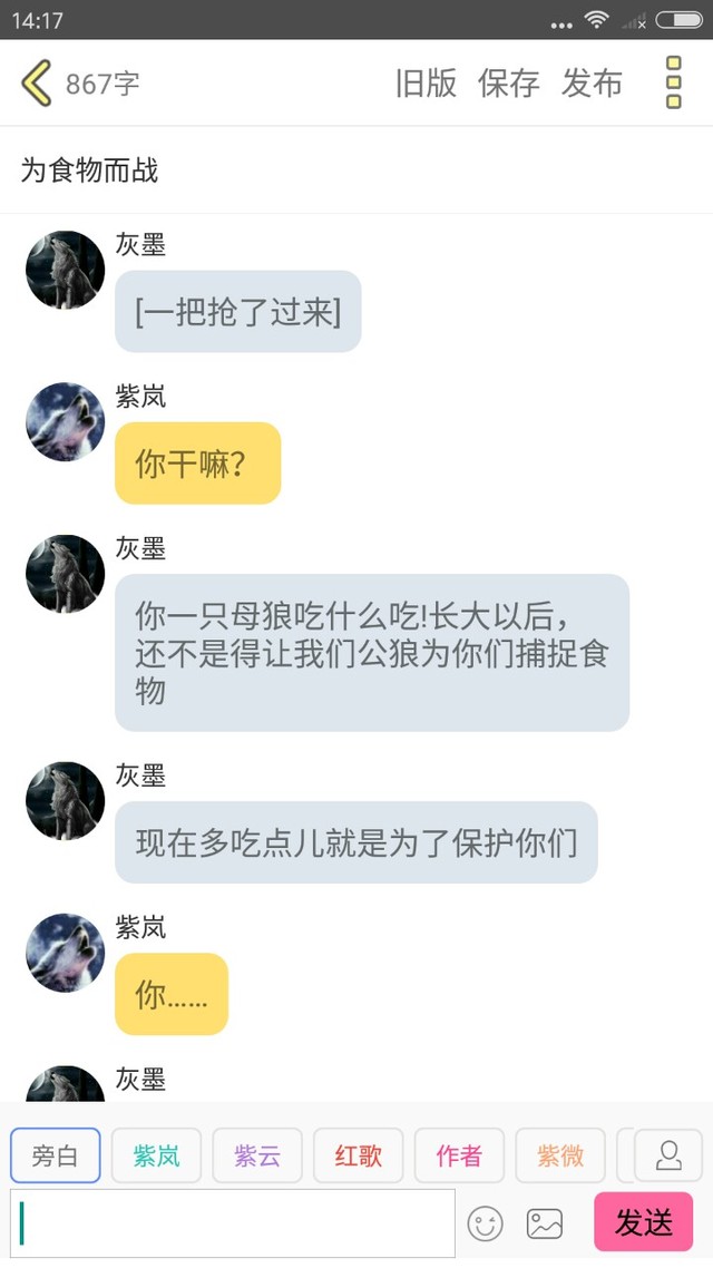 紫岚慢慢走上前去,她看见有许多匹母狼用妒忌的目光投向自己