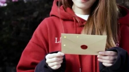 莉莉挥舞手中的信封,难掩兴奋之情。