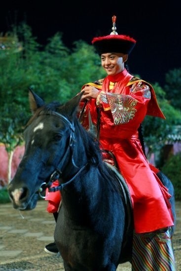 尔康,尔泰,箫剑三位新郎官在前面骑着马