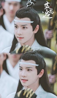 只见一个身穿白色衣服,头带抹额的人出现了,身后还跟着一群蓝氏子弟…