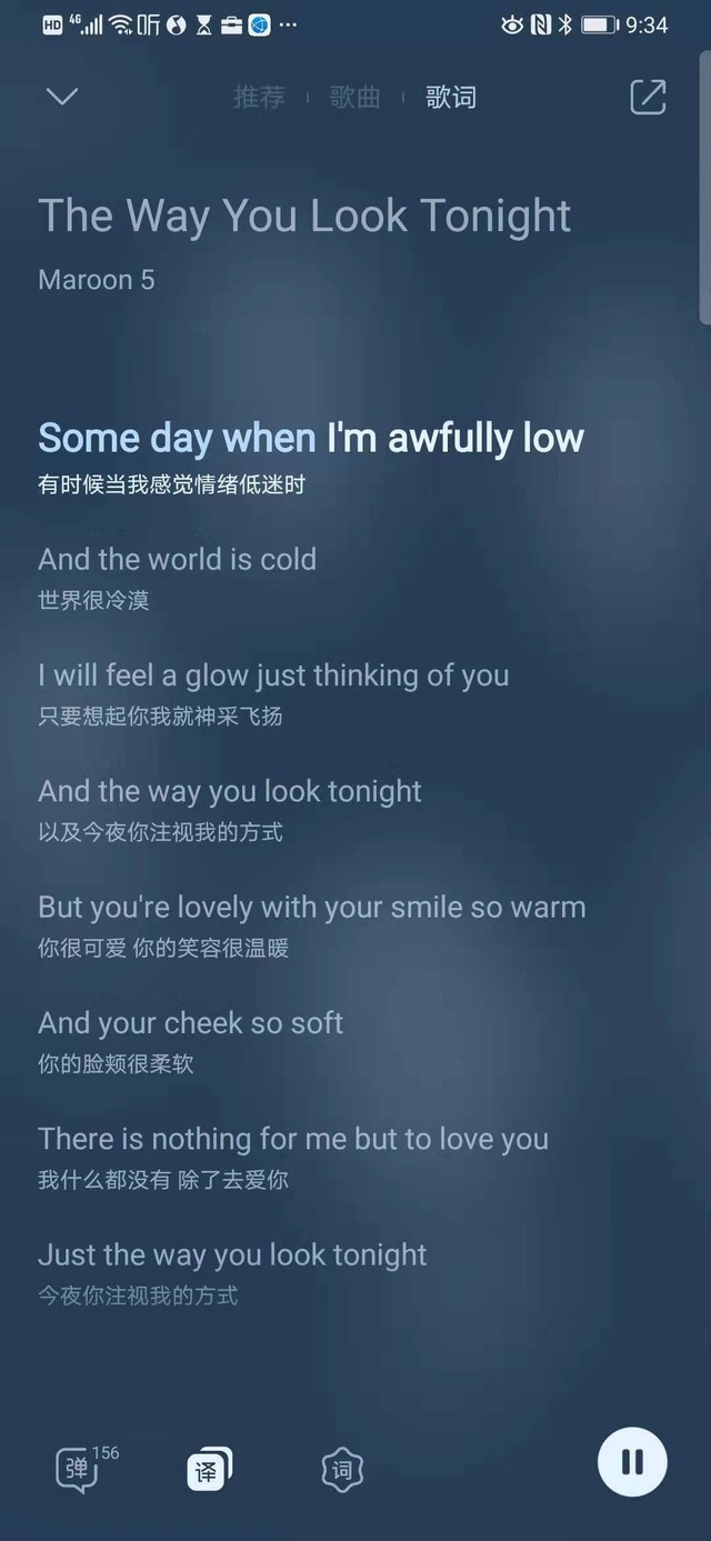 “接下来送给大家一首非常温馨的歌曲,来自Maroon5的《The Way You Look Tonight》(今夜你的样子)。”