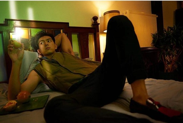 爱丁堡的冬日黄昏,刺骨的寒风如刀割般毫不留情地拍在路人的脸上,每个人都步履匆匆在回家的路上。韩商言穿着黑色高领毛衣,外披墨绿色呢子大衣,头戴一顶爵士帽。由于风大,为了防止风吹跑帽子,他不得不用手按着帽子低着头走在路上。
