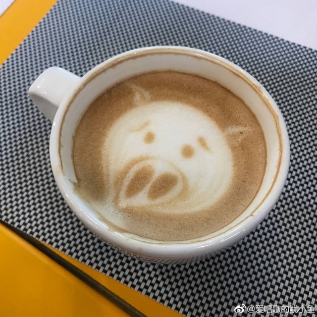 韩商言“这么棒的咖啡,第一口当然是给我亲爱的小猪猪了。。。。。。”