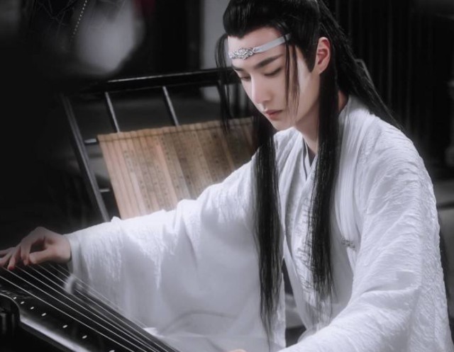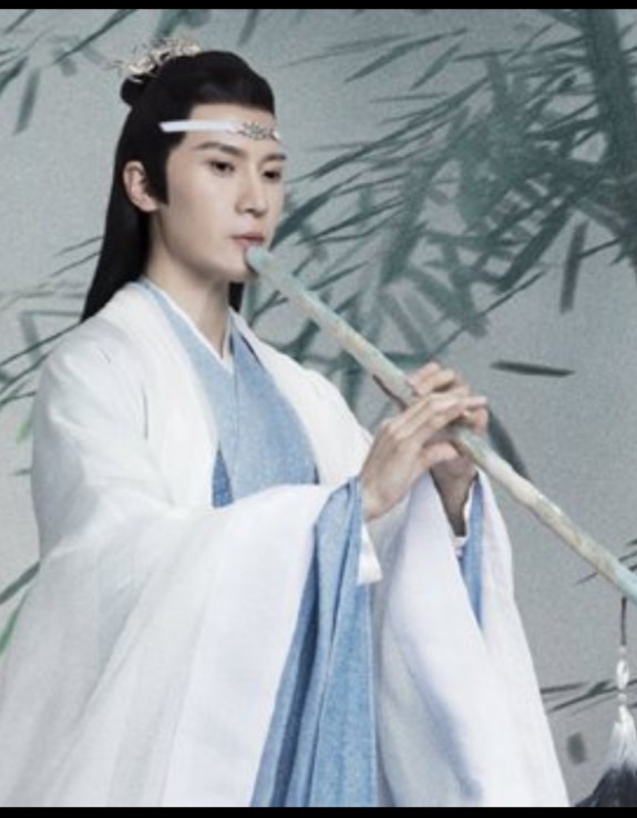 蓝湛双腿盘坐弹琴,蓝曦臣吹奏玉箫