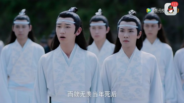 江澄闻言举起紫电,月影拖着病体与蓝湛一同将魏无羡护在身后。