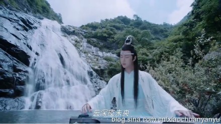 瀑布前,蝴蝶环绕,芳香四溢,溪水边魏无羡吹着笛子,蓝忘机抚着琴,风兮诺与洛竹溪也分别拿出了本属于她们的乐器。