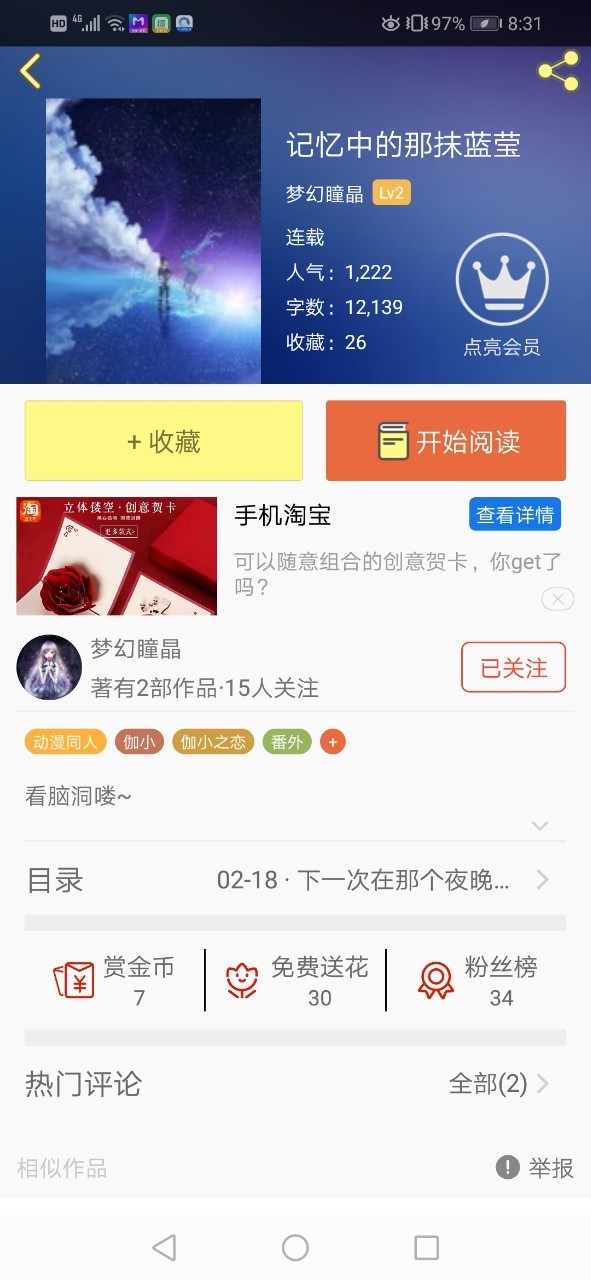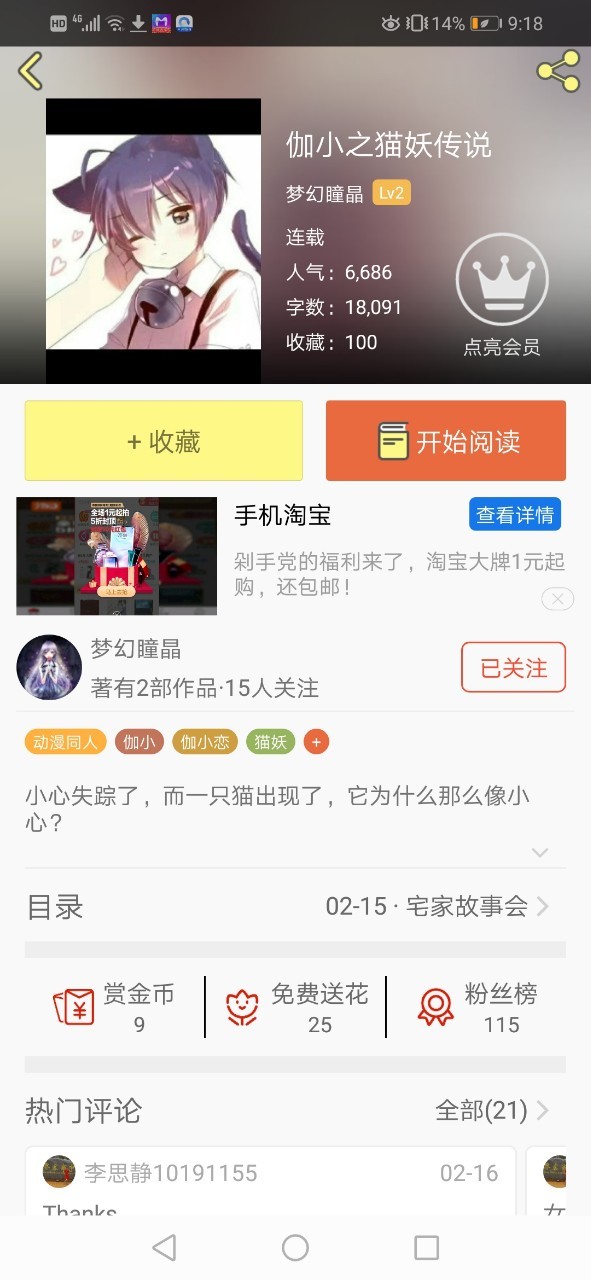 作者可喜可贺,在这喜气洋洋的一天,我们迎接来我们的书《伽小之猫妖传说》破了100收藏