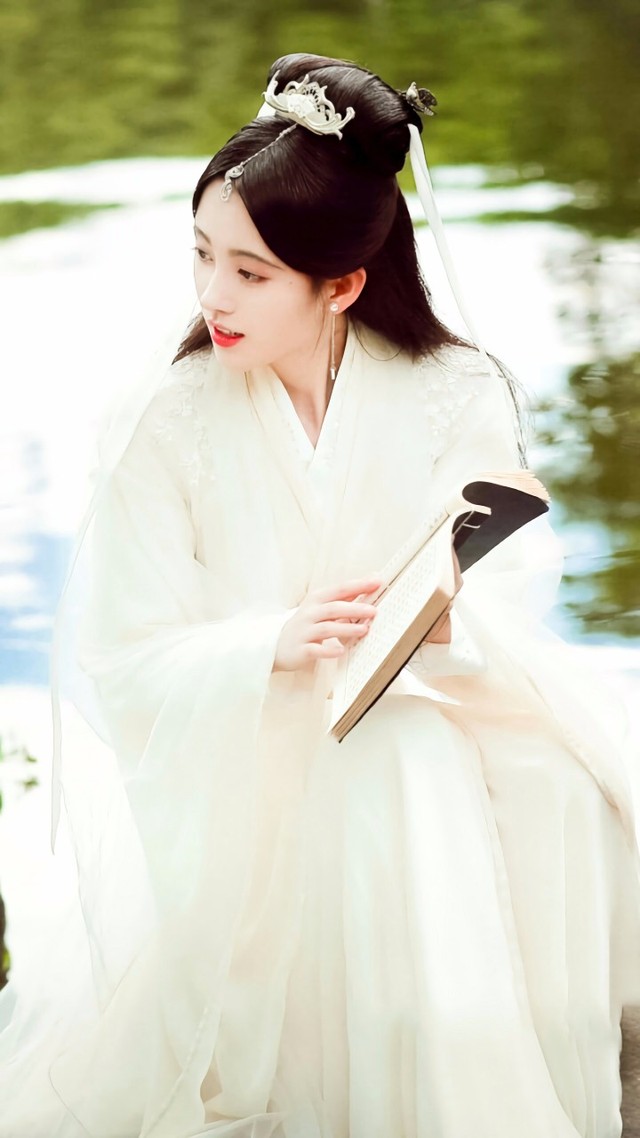 一袭月白色烟纱裙衬得她肌肤白皙,勾勒出她纤细窈窕的腰肢.