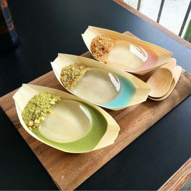 千玺Bap,给我拿两杯三色刨冰,两杯蓝色天使,一碟水信玄饼和草莓芙思。