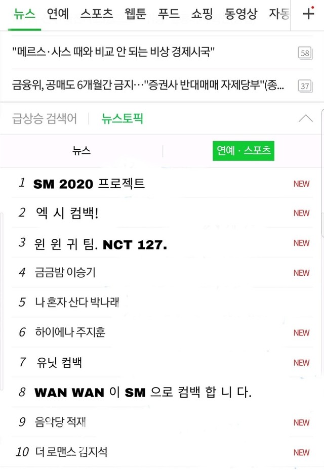 SM.Entertainment.发布了今天会议的内容,迅速登上NAVER热搜。