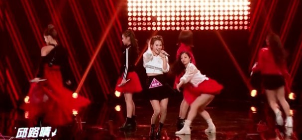 接下来表演的是李紫婷组的《红色高跟鞋》,为了配合这首歌,她们统一穿上了飘逸的红色纱裙,脚踩红色高跟鞋,一眼望去个个高挑性感。