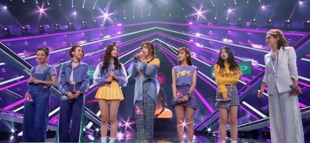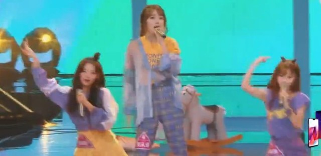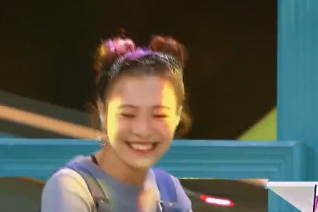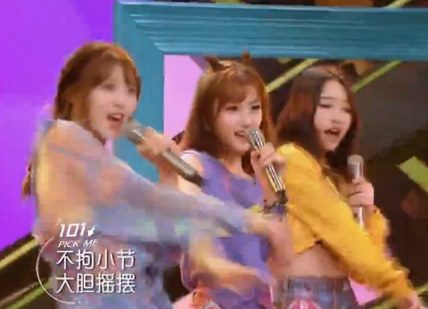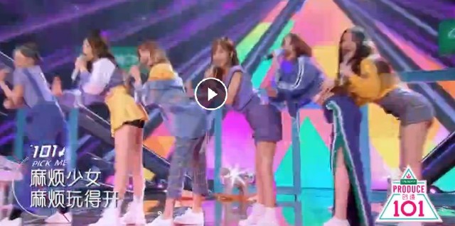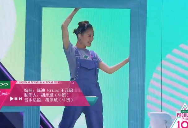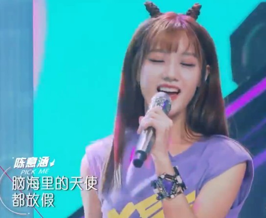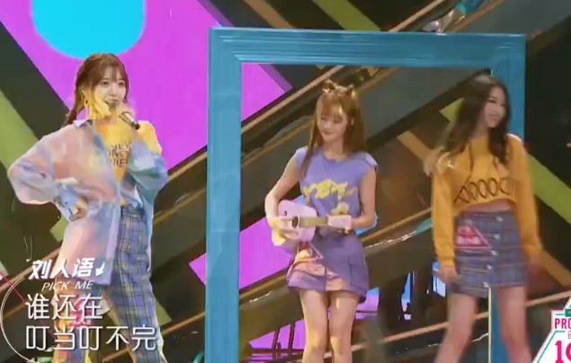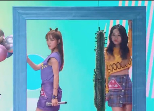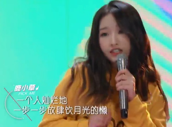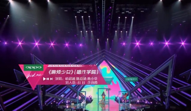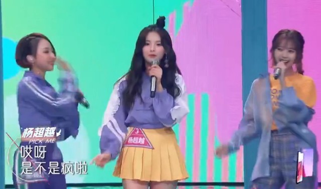 杨超越跑到台前,准备好。和队友一起表演了一首《麻烦少女》,