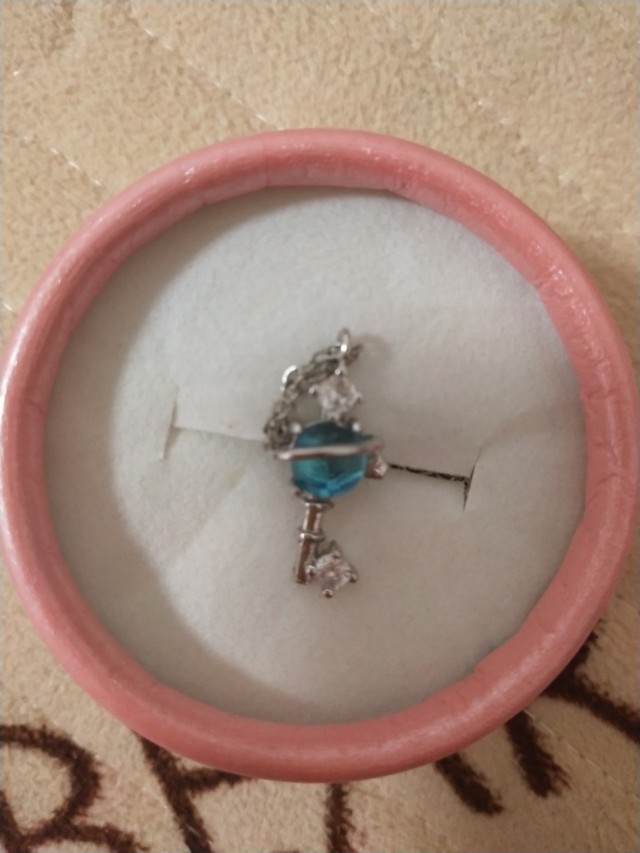 只见,夏之光拿出一个粉色的盒子,里面是一条蓝色的项链。