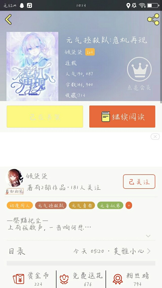 倾柒柒“元气的圈子虽然不算太冷,但有十万人喜欢我的书我已经很开心了。”