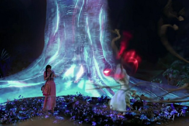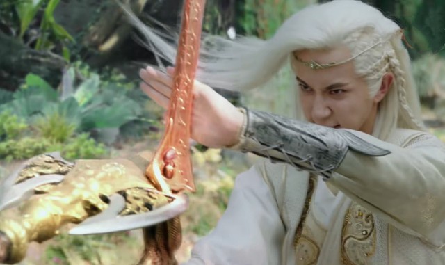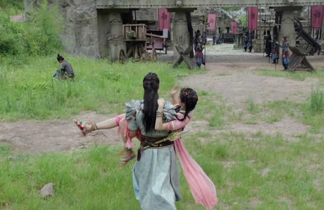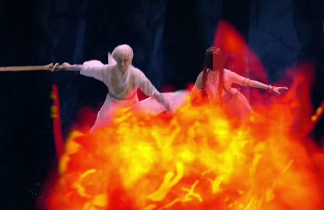 树妖几次要攻击灵曦,都被暮云救了下来。最后,暮云用自己的剑气之龙,带着灵曦跑了出去。