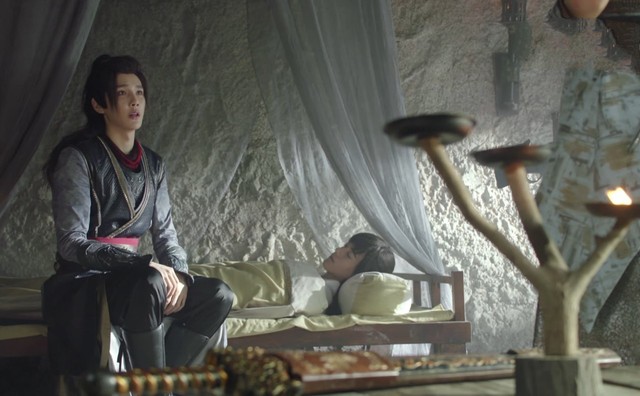 晚上,横艾一个人在军营后山的树林里吹笙,神情忧郁,乐曲里满满透露着悲伤。多鹏突然出现在横艾的眼前