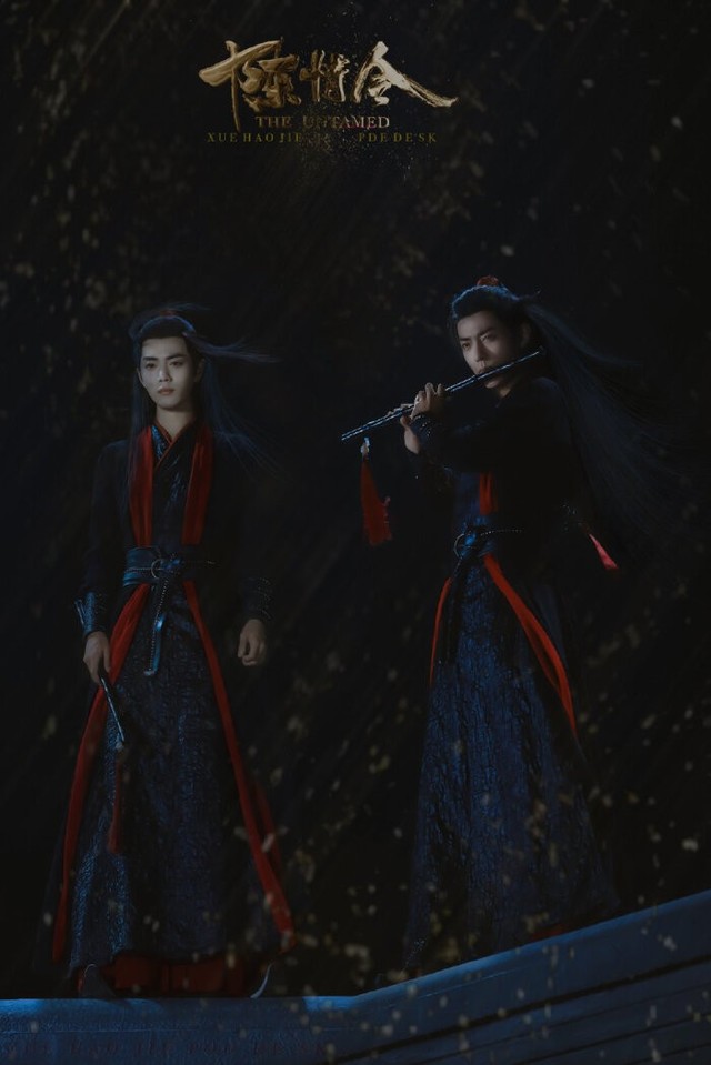 魏无羡紧握着陈情纵身飞到了不夜天最高的宫殿顶端,墨色的衣摆被寒风吹的猎猎作响,身后是皎洁的一轮明月,还在撒着银白色的清冷月光,绸缎一般的长发微微飘动,在风中被寒风吹得凌乱,像极了一朵开的正艳的墨莲,微抬的眼尾还泛着几分未散的殷红,一双桃花眼微抬,看着下方仿佛炸开了锅一般的人群,原来满是温柔笑意的眼眸之中此时却只剩下了刺骨的冷意。
