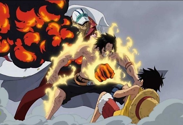 波特卡斯·D·艾斯(走到赤犬面前)闭嘴!白胡子是我的大恩人,我绝对不允许你羞辱他!(攻击赤犬)