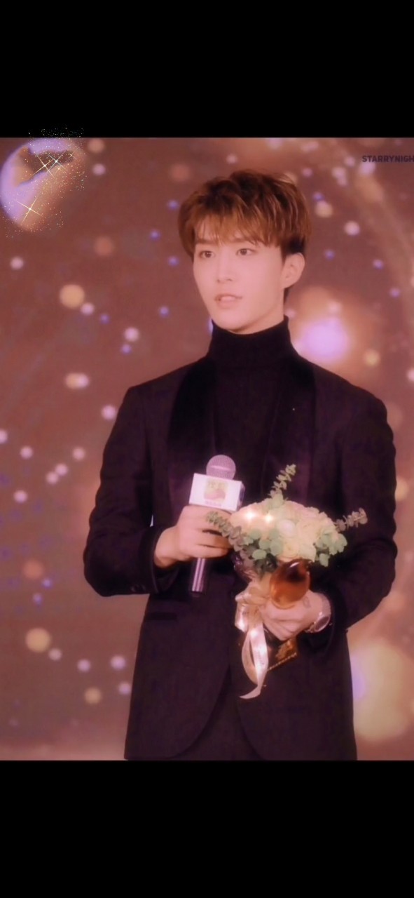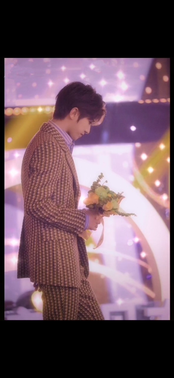 蔡徐坤抓着手里花束眼角弯弯柔情而笑