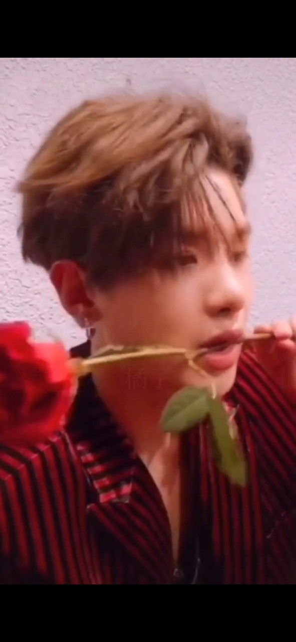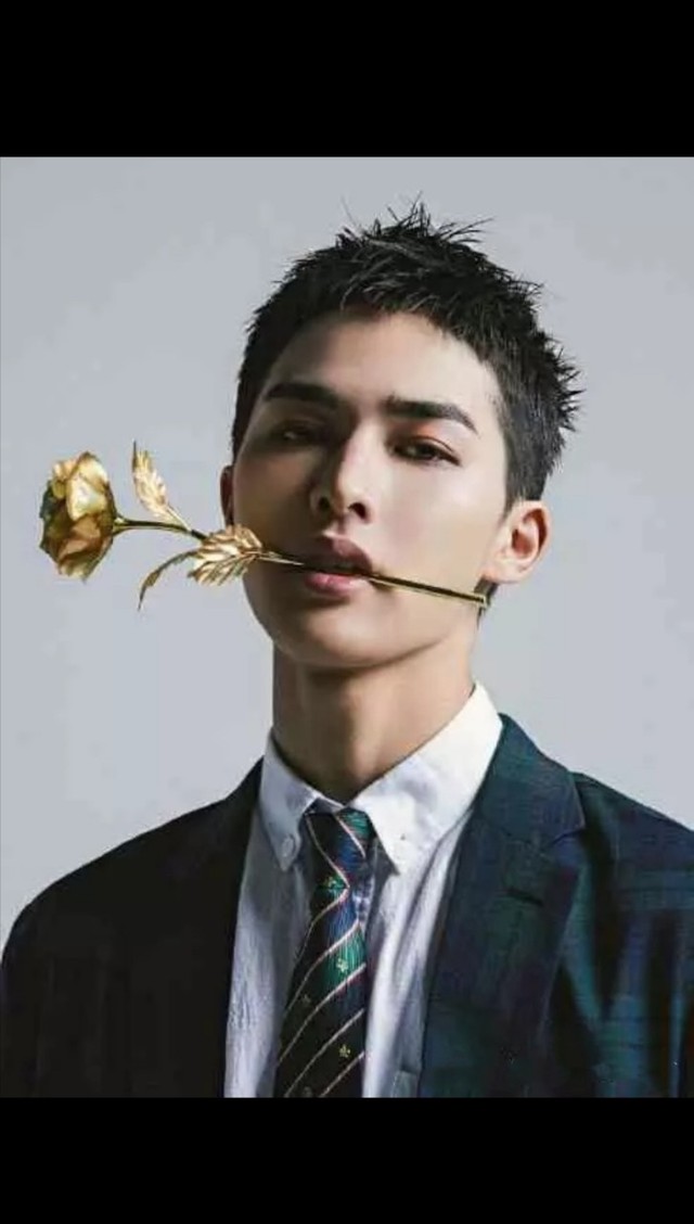 黄明昊的嘴里咬着牙一只红色玫瑰花 ,一改青涩稚嫩的他邪魅一笑