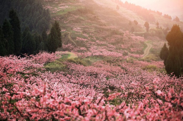 不同于以往的狭小冷清,此刻里面仿佛是另一个空间,阳光明媚,竟是鸟语花香之景,里面还有许许多多的桃树,实为一番仙境啊