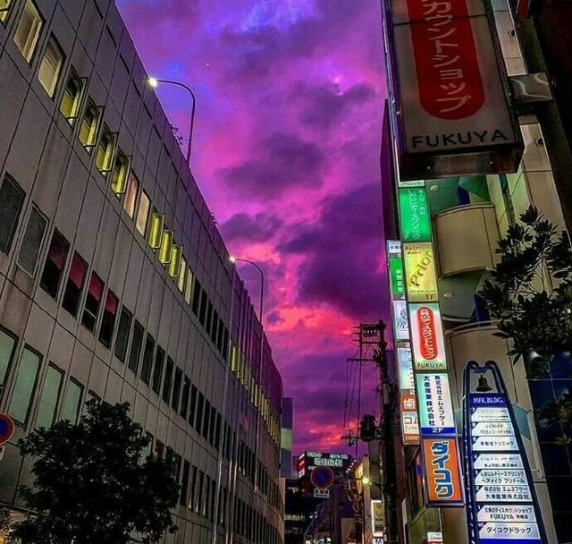 你们还记得前几天日本“海贝思”来临前的二次元紫色天空照片吗?