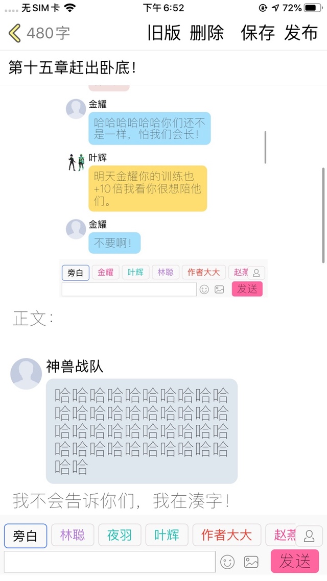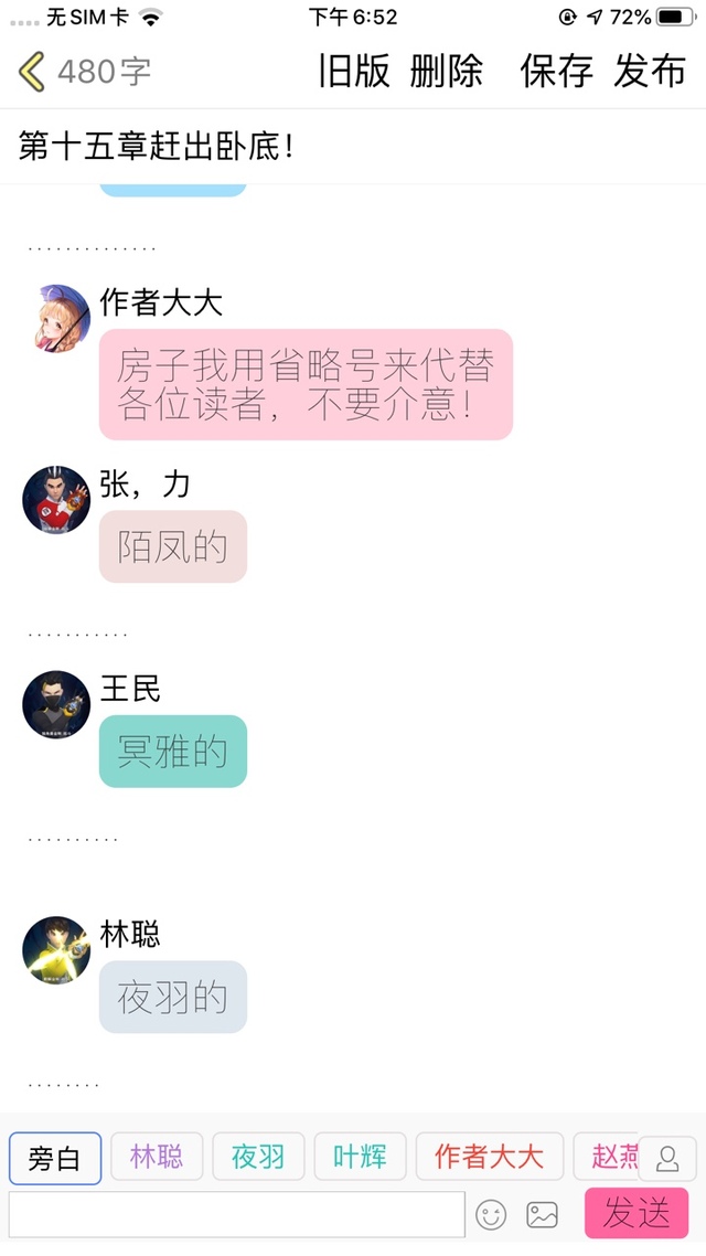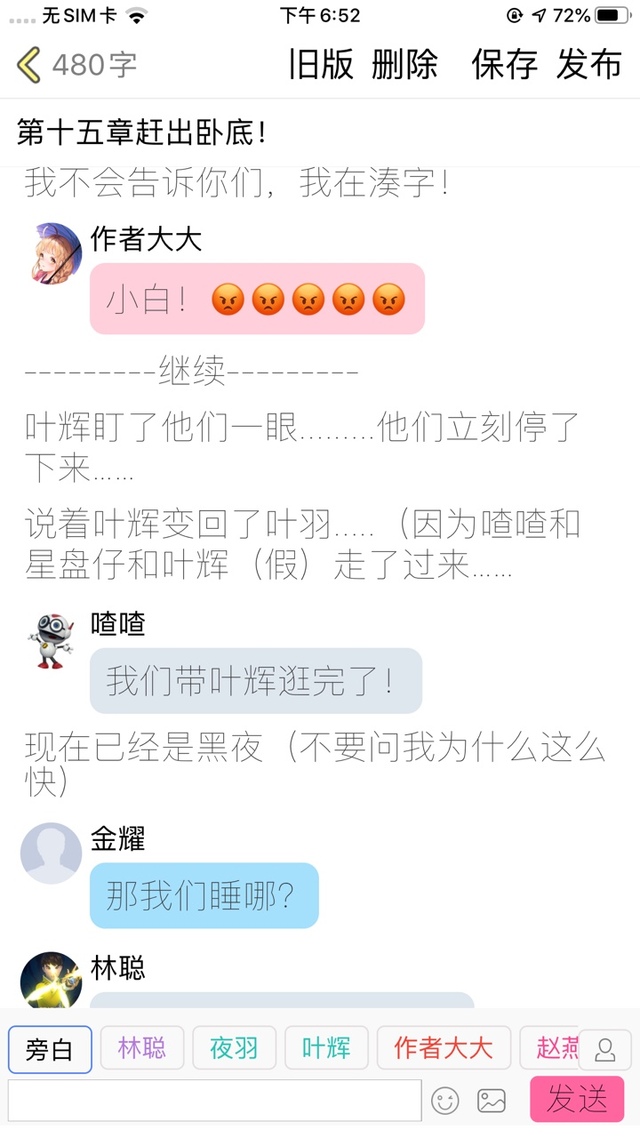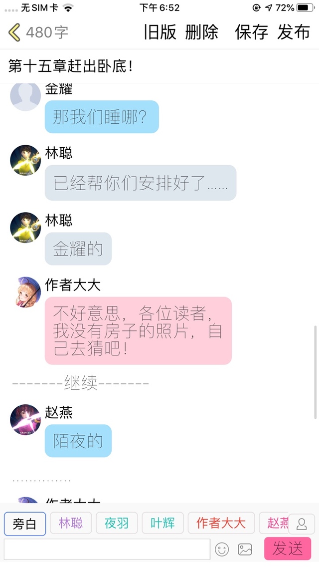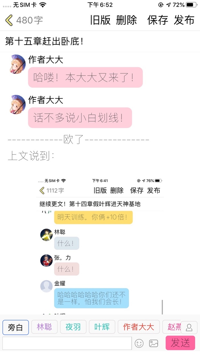 作者大大各位读者,不好意思,我刚刚其实15章已经写到一半了,可是不小心没有写完就发布出去了,所以那一半我已经截图了,前面一半,我用图片先代替!