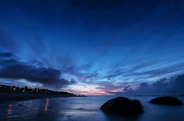 轻柔明亮的月色撒在落月湖面上,非常美,朵朵海棠花辨随风飘散。月影映在湖面上,变成皎洁的蓝月。