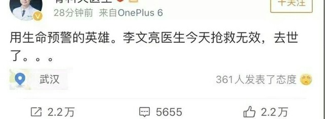 这个消息震惊了整个朋友圈,无数人在为李文亮医生的逝世哀悼。
