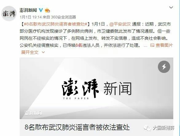 而就在武汉公安部门的消息发出来之后,很多新闻机构急哄哄征讨围剿8名“造谣者”,他们同样成为了帮凶,这些新闻,让原本很多因此产生警惕心的人,慢慢将防护心削弱下去。