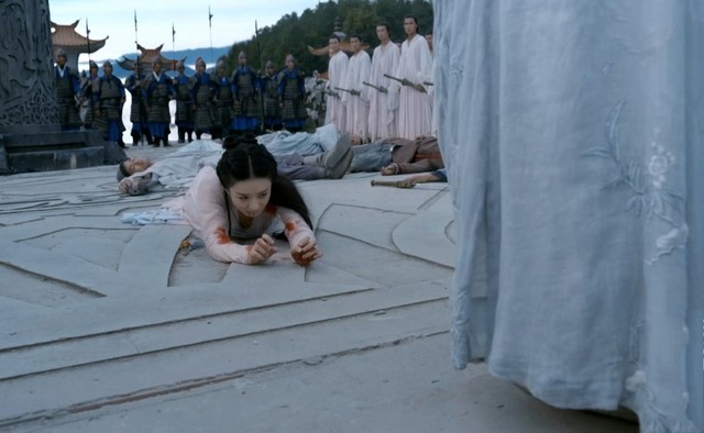 只见千骨倒在地上,旭凤想要扶起她,却被润玉拦住。