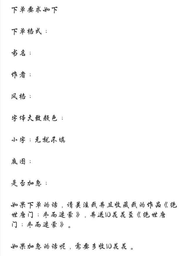 千载恋冬.千月下单要求以及下单格式